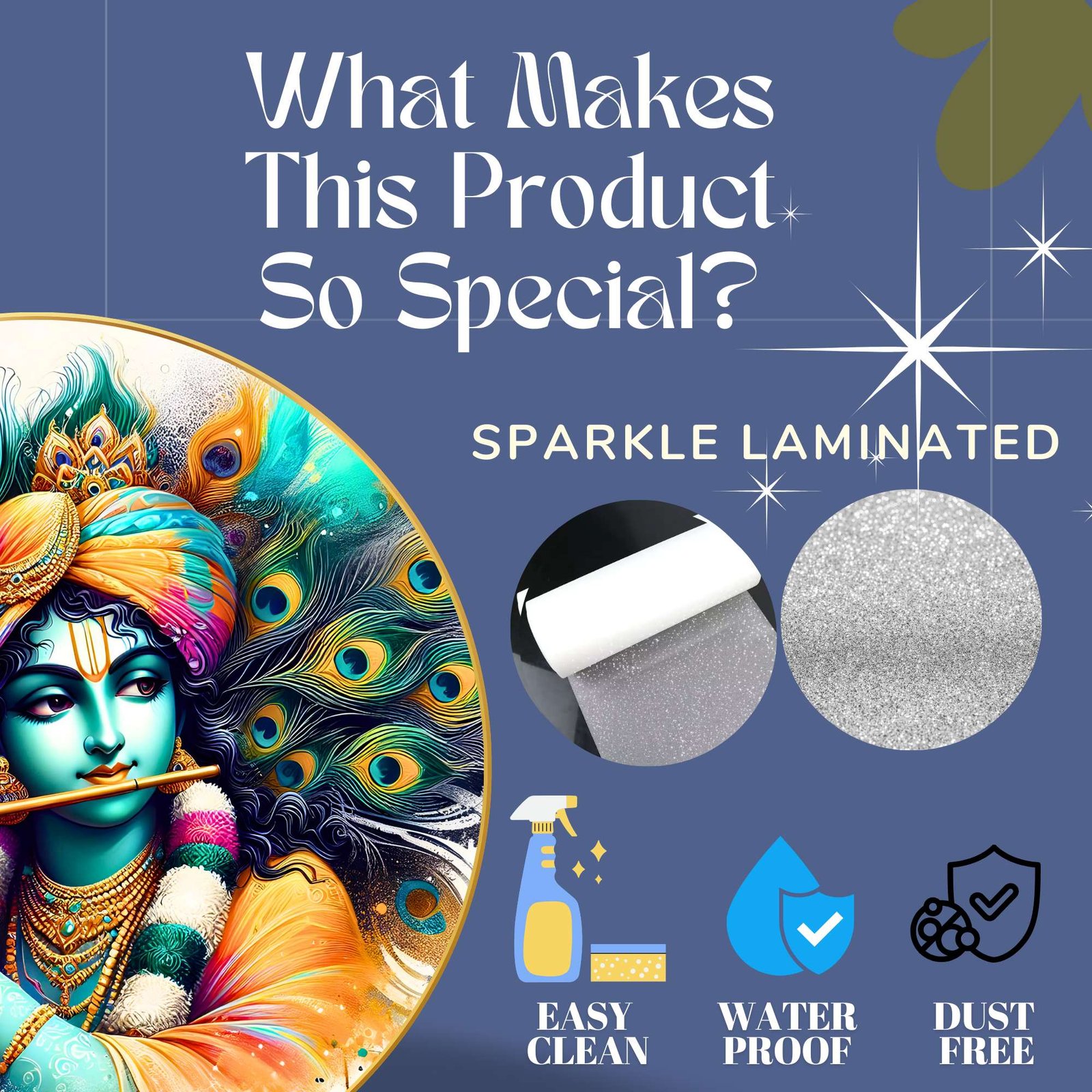 This Golden Round Frame painting with frame is made with high-gloss photo paper, featuring a unique glossy sparkle laminate that enhances the vibrancy and details of the artwork. Whether you are looking for a wall painting for living room or a wall painting for bedroom, this piece will add a touch of divinity and grace to any space. The high-quality finish ensures that this painting for wall decoration stands out.This Golden Round Frame painting big size is designed to fit seamlessly into your home decor, whether you are looking to enhance wall decor for bedroom or create an ambiance of peace in your living room. It is not just a Krishna Radha painting frame but also a meaningful symbol of love and devotion, making it one of the finest